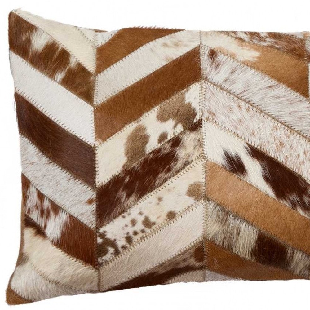 12" X 20" Brown and Off White Chevron Cowhide Throw Pillow