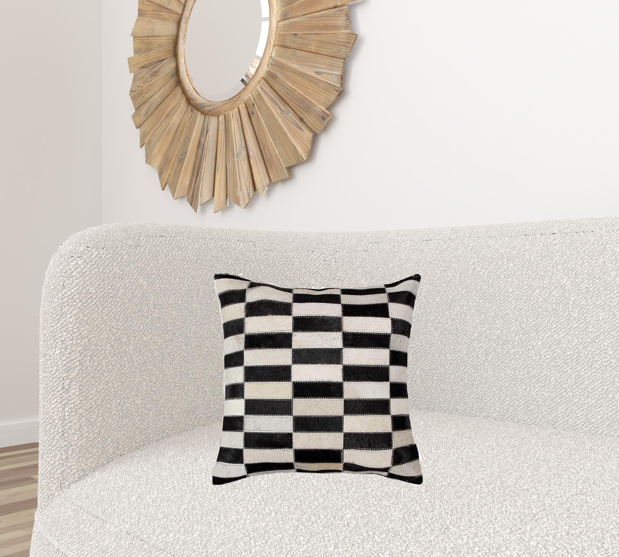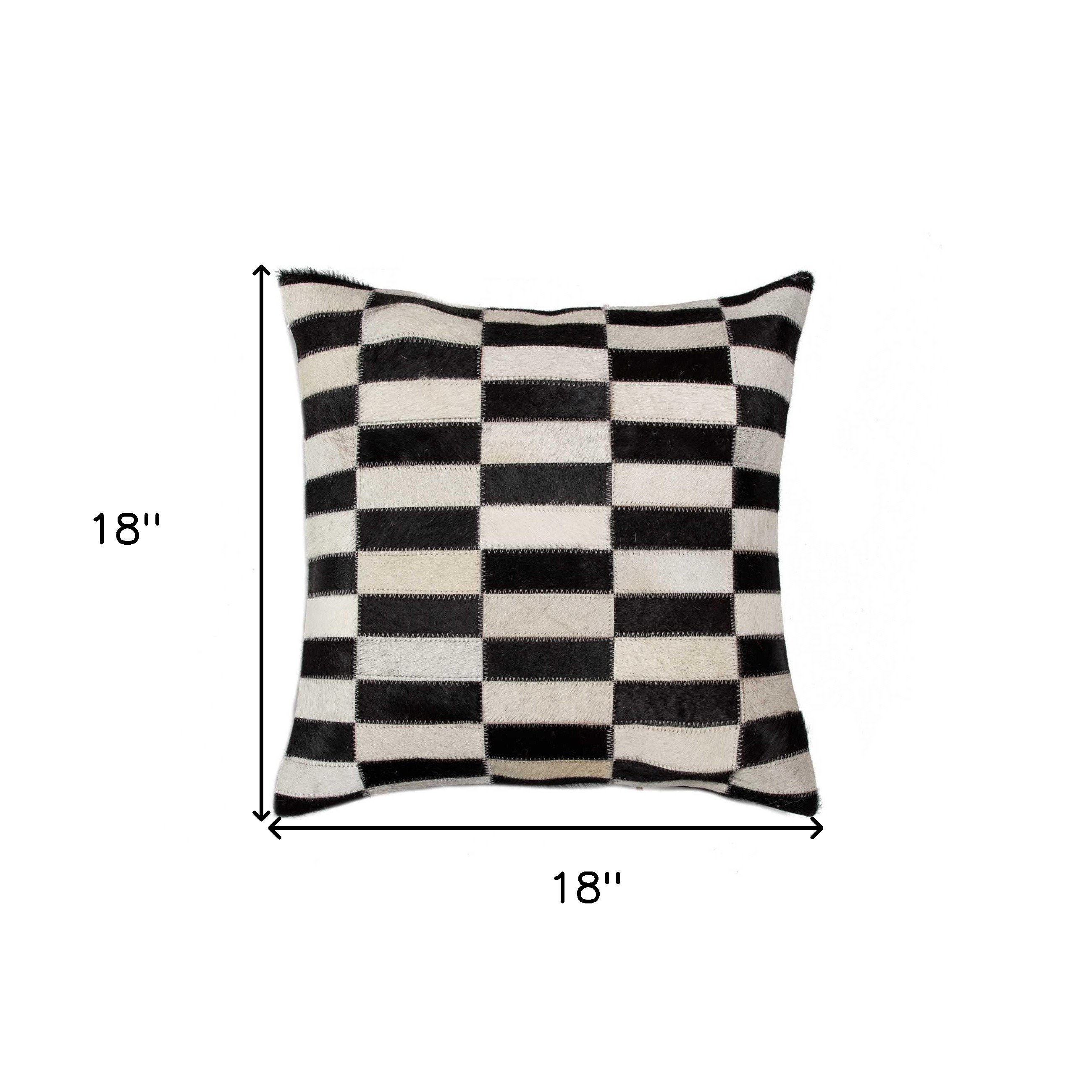 18" X 18" X 5" Black And White Linear Cowhide Pillow