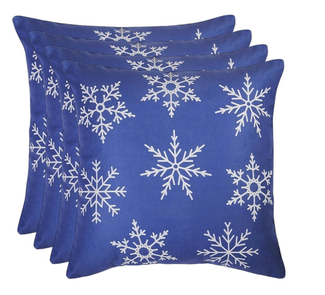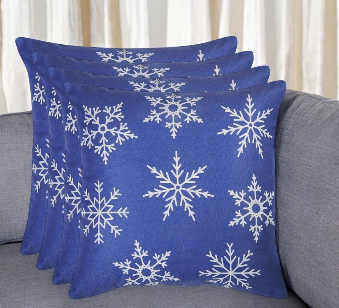 Home > Set Of 4 18" Christmas Snowflakes Throw Pillow Cover In Blue