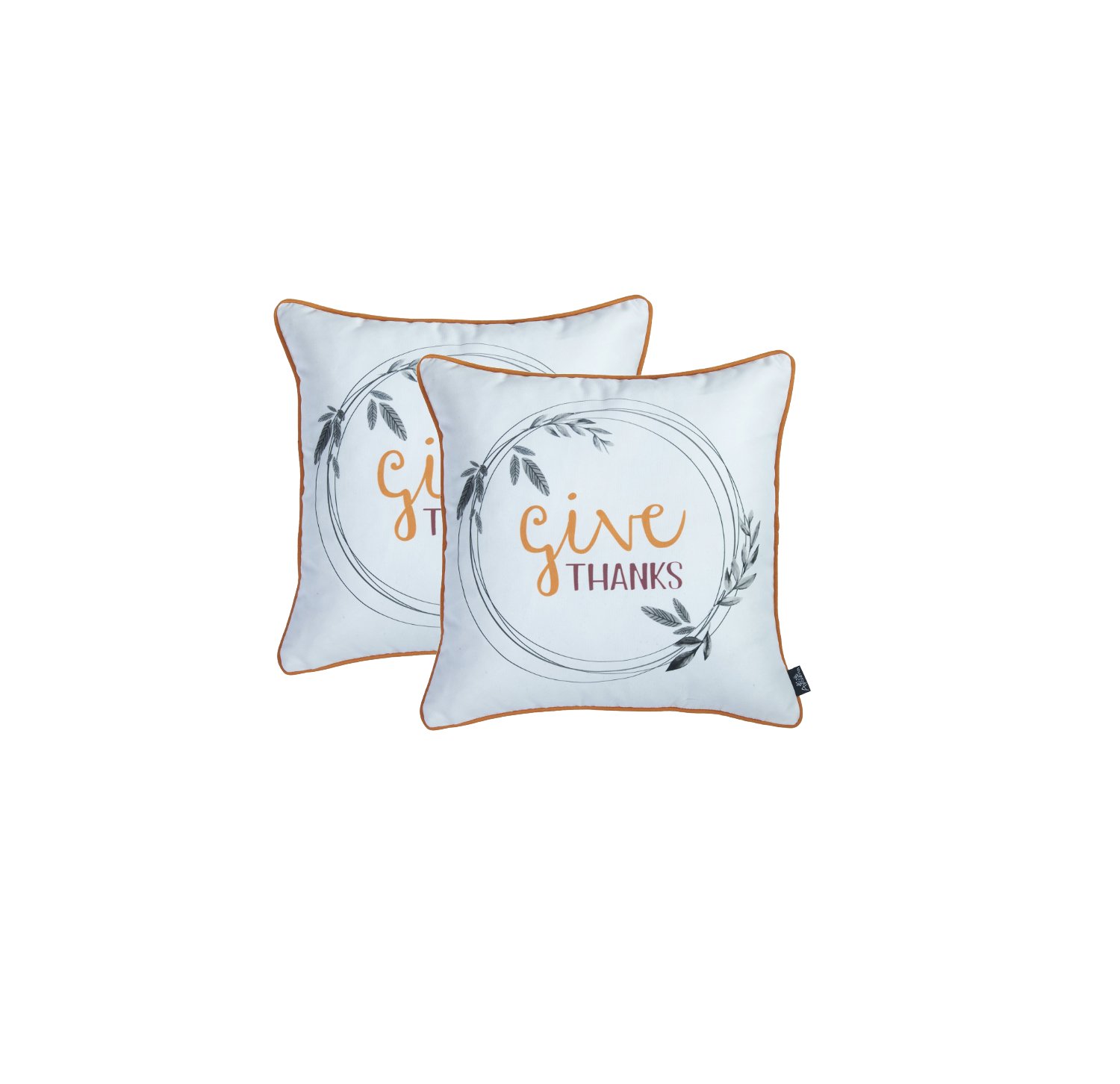 Set of Two Orange and White Give Thanks Throw Pillow Cover