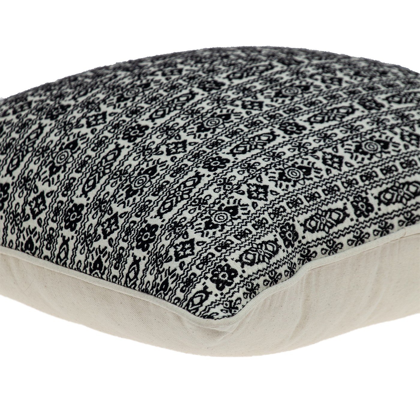 The Black and White Vintage Design Throw Pillow can be a great showpiece on your couch or on the corner armchair, whichever look you prefer better. The vertical patterns and designs on the pillow give it a trendy look and the strong black stitching against the cream ivory background leaves an amazing-looking contrast. This is a 100% cotton throw pillow. 20” x 20” x 5”