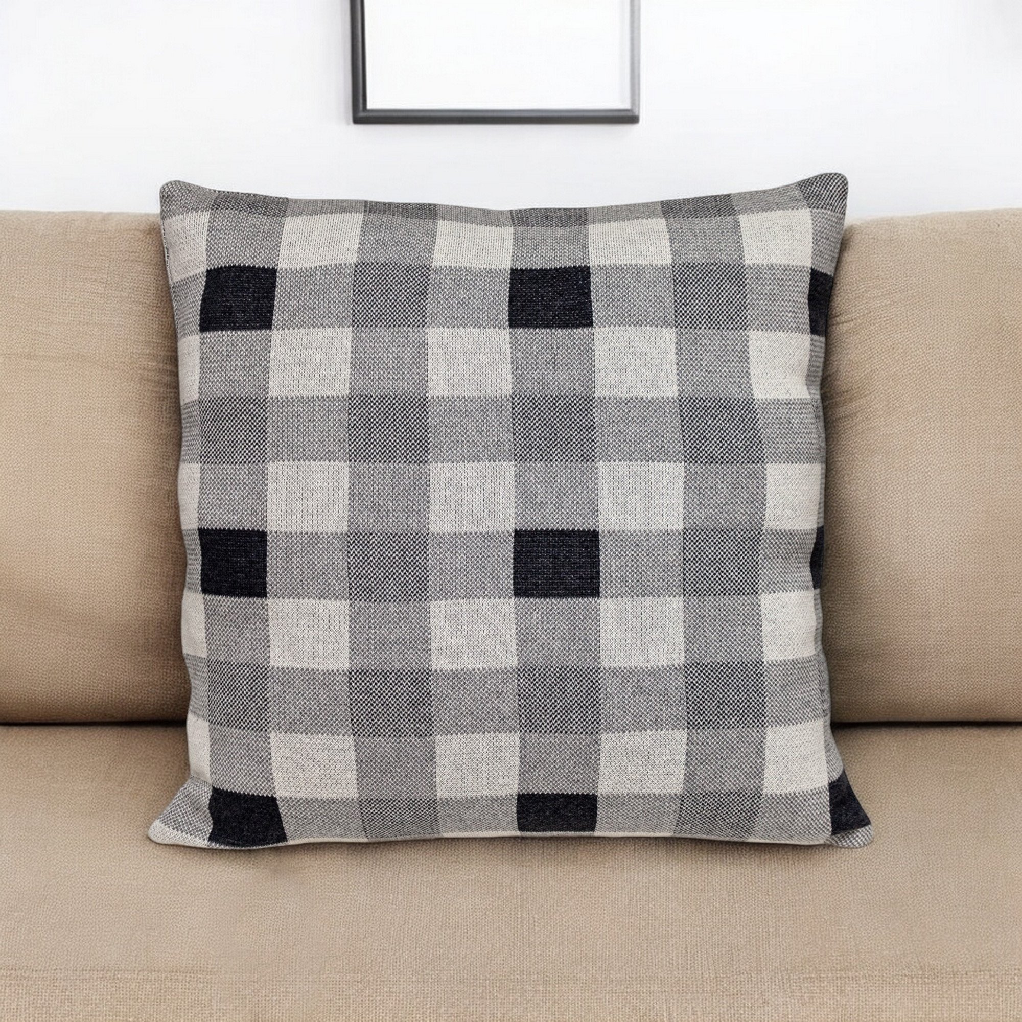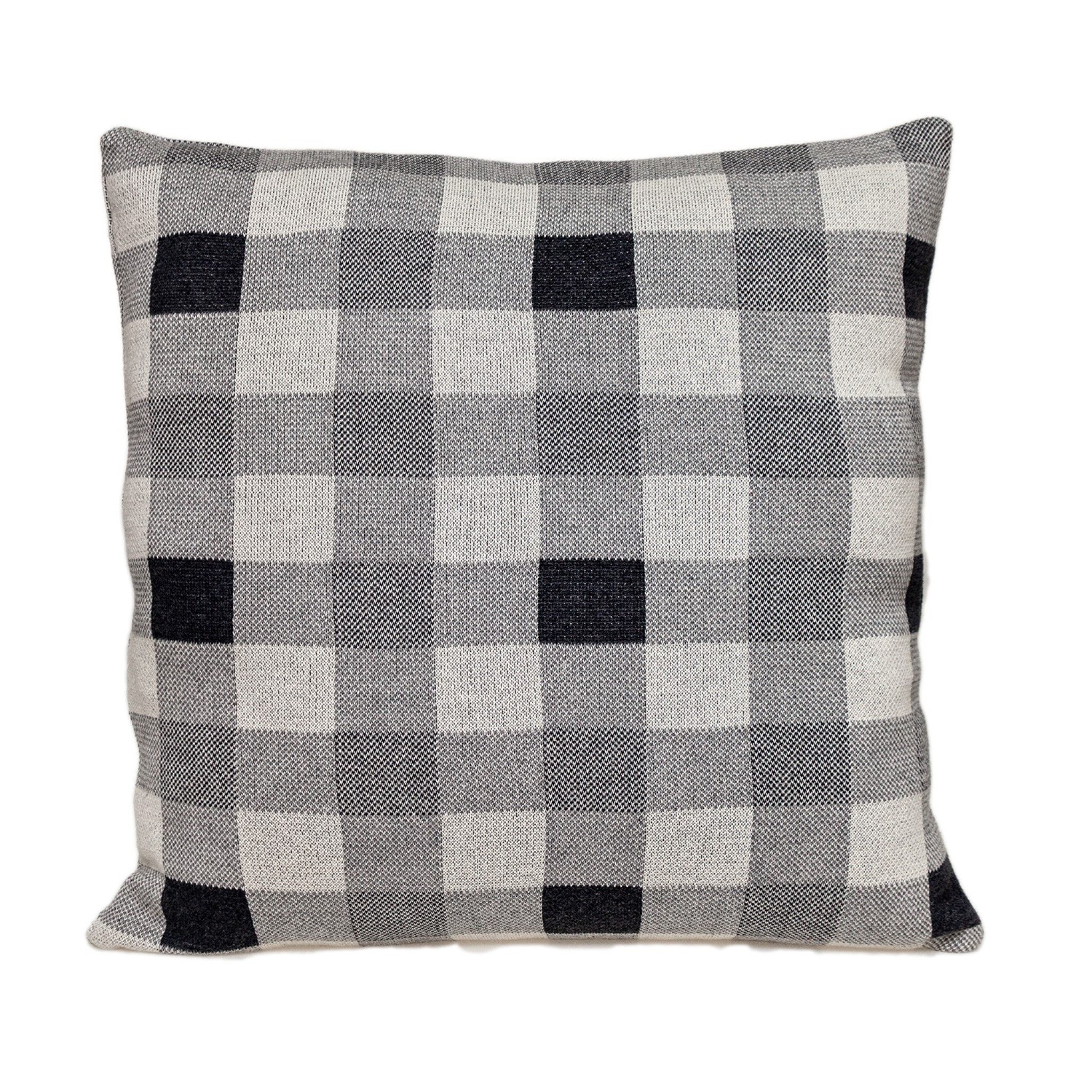 Make your lounging space cozy, comfortable, and subtly stylish with the Lead Grey Checkered Pillow. Made from 100% cotton, the knitted cushion cover with a checkered pattern in different shades of grey gives the pillow great warmth and elegant style. Along with adding style, the cushion is fluffy and soft to keep your comfortable, and there is a zipper closure on the edge for easy access and cleaning. 20” x 20” x 4”