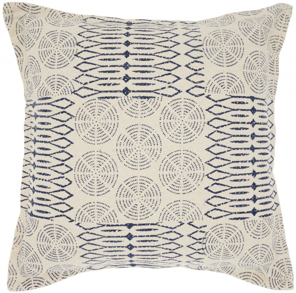 20" Indigo And Ivory Geometric Cotton Throw Pillow