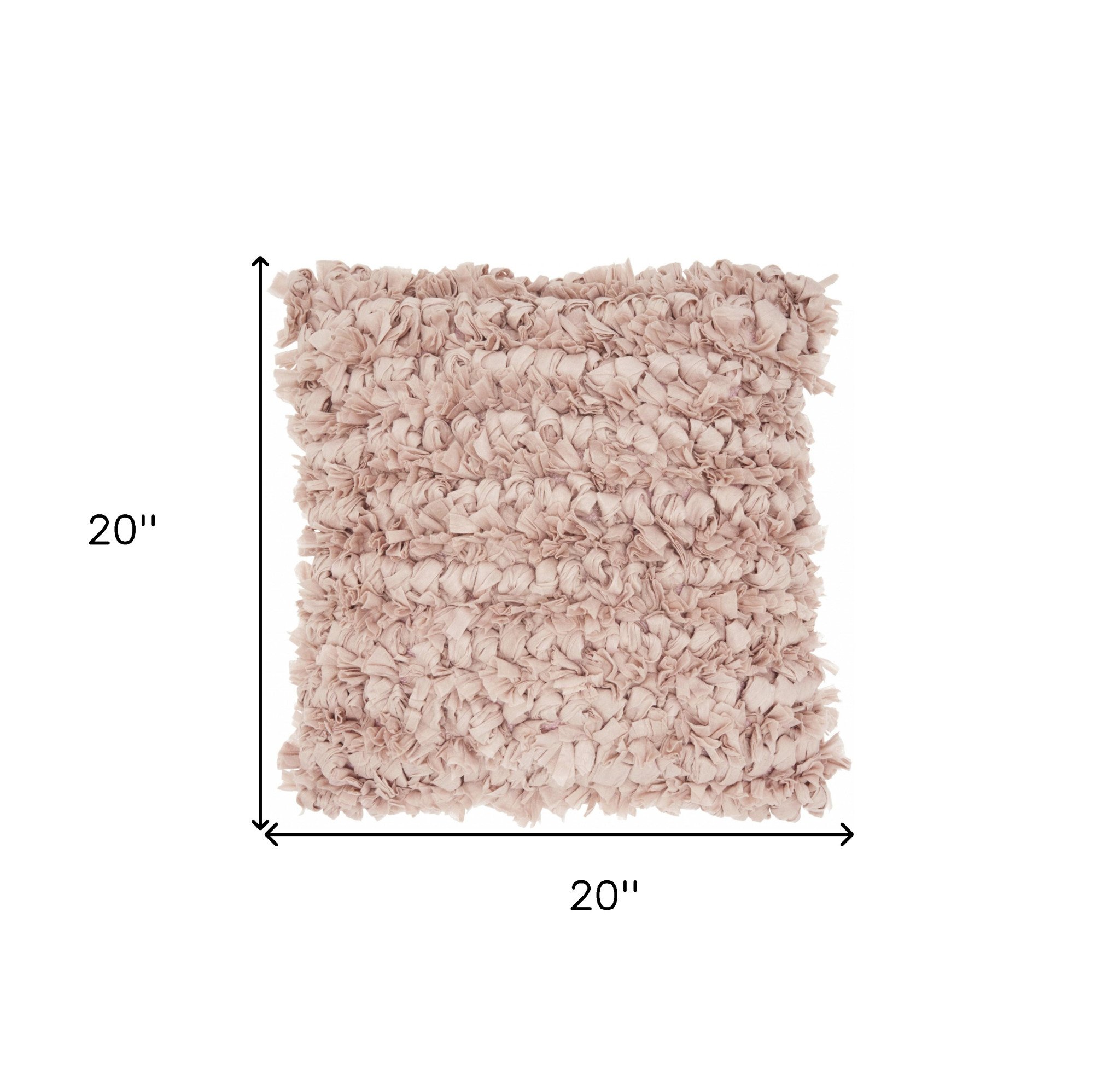 20" Light Pink Cotton Blend Shag Throw Pillow