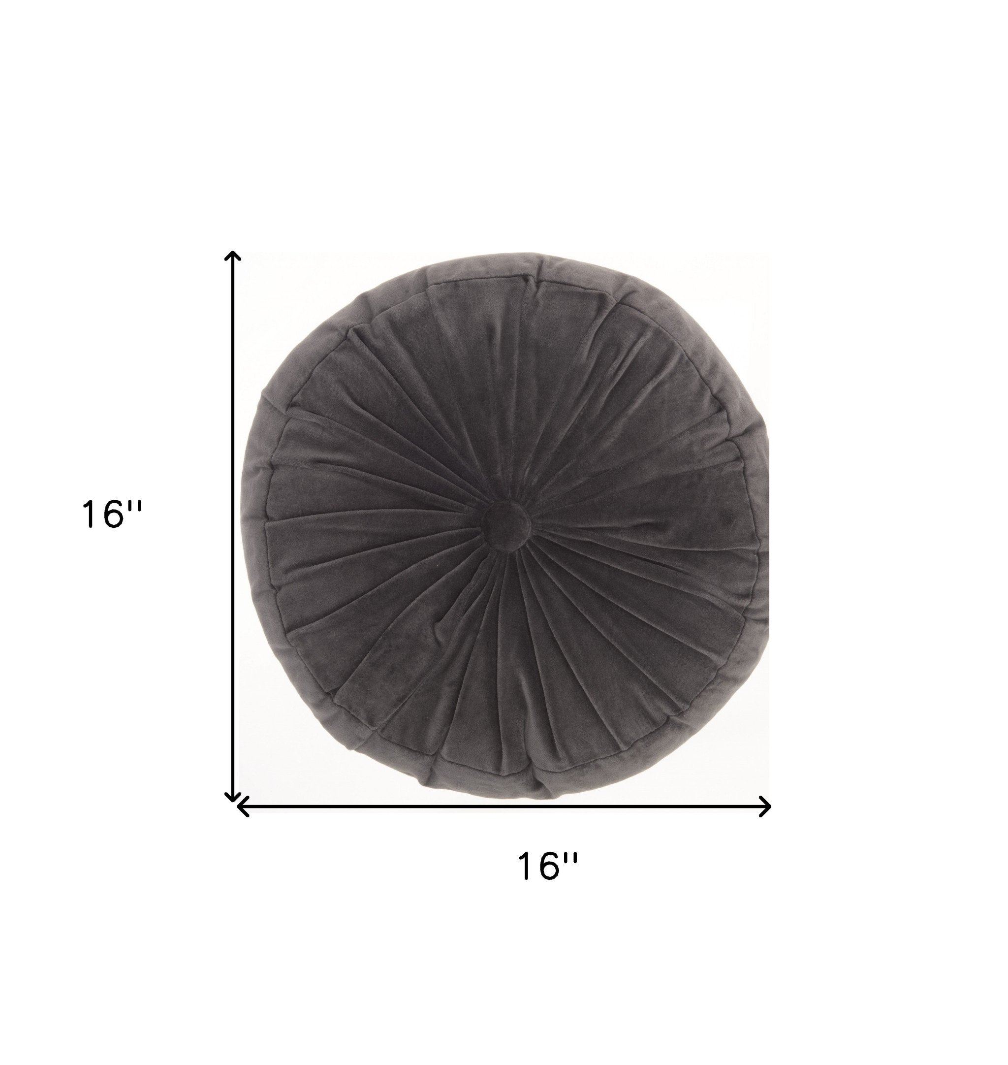 16" Dark Gray Round Tufted Velvet Throw Pillow