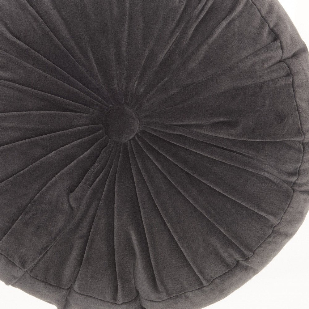 This Dark Gray Tufted Round Throw Pillow is the perfect way to add some unique design and comfort to your home. This pillow has a round shape and is covered in a stunning dark gray colored fabric. This fabric has a very soft and velvety feel to it which adds to the comfort that this throw pillow provides. This pillow has tufting in the middle which gives it the pleated look and is completed by a dark gray colored button holding it all together. This round throw pillow will add a nice depth to any pillow decor you have on your bed, on your couch or can be used as a stand alone pillow on your favorite chair as well. 16-inch H x 16-inch W x 5-inch D