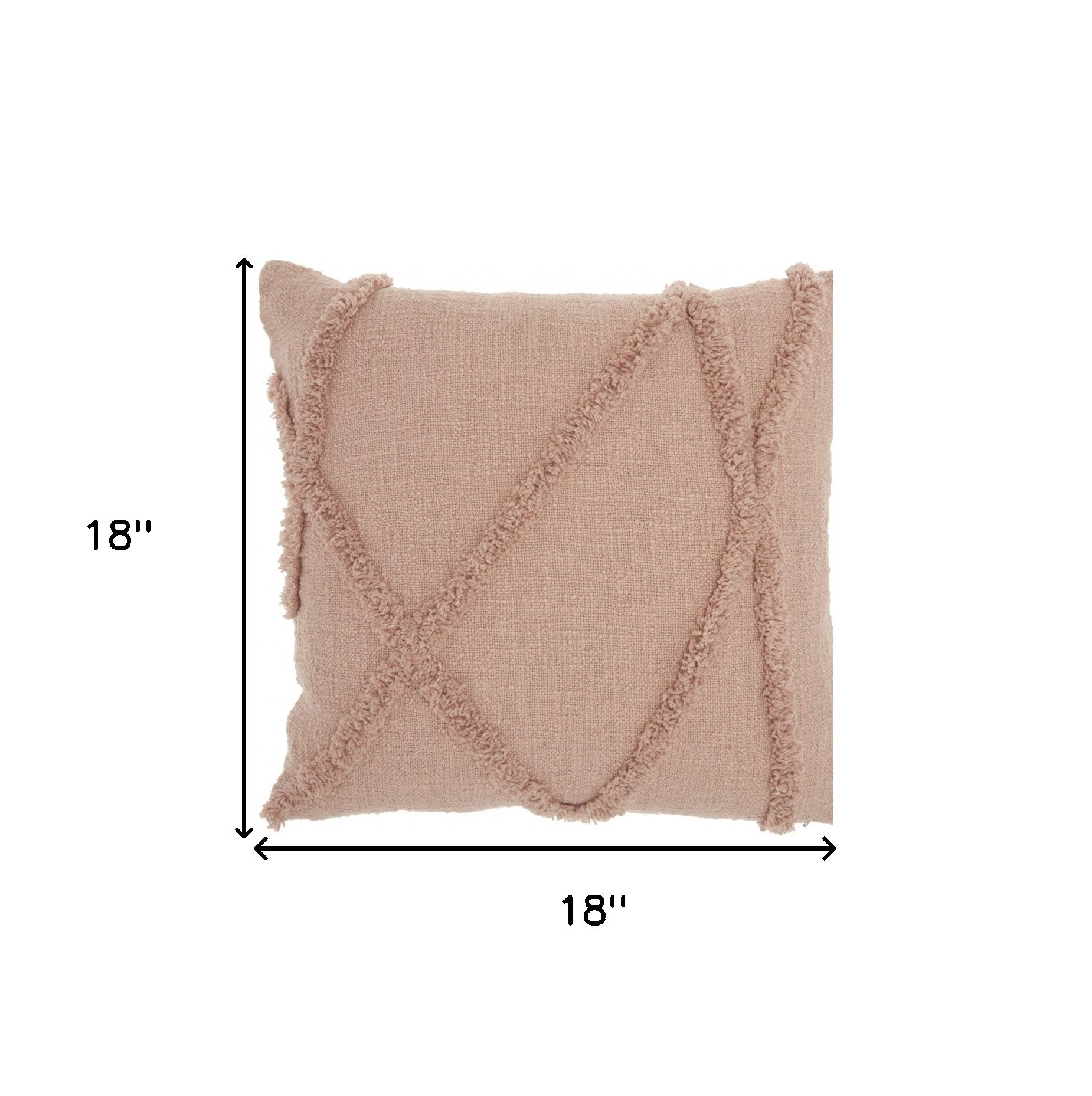 Impressing the viewer and holder with its soft-touch details, this Boho Chic Solid Blush Textured Lines Throw Pillow will engulf anyone holding it with an unearthing sense of comfort and relaxation. The textured lines are made to entice you and your guests with its high-quality material and playful design. Using 100% cotton fabric, the textured pattern is made to last without losing its original allure. The solid blush pink color works wonders with bright and neutral colors giving a hint of elegance while keeping all of your art pieces in the limelight. Complete your bohemian look while staying true to your creative self with this unique throw pillow. 18” x 18” x 5”