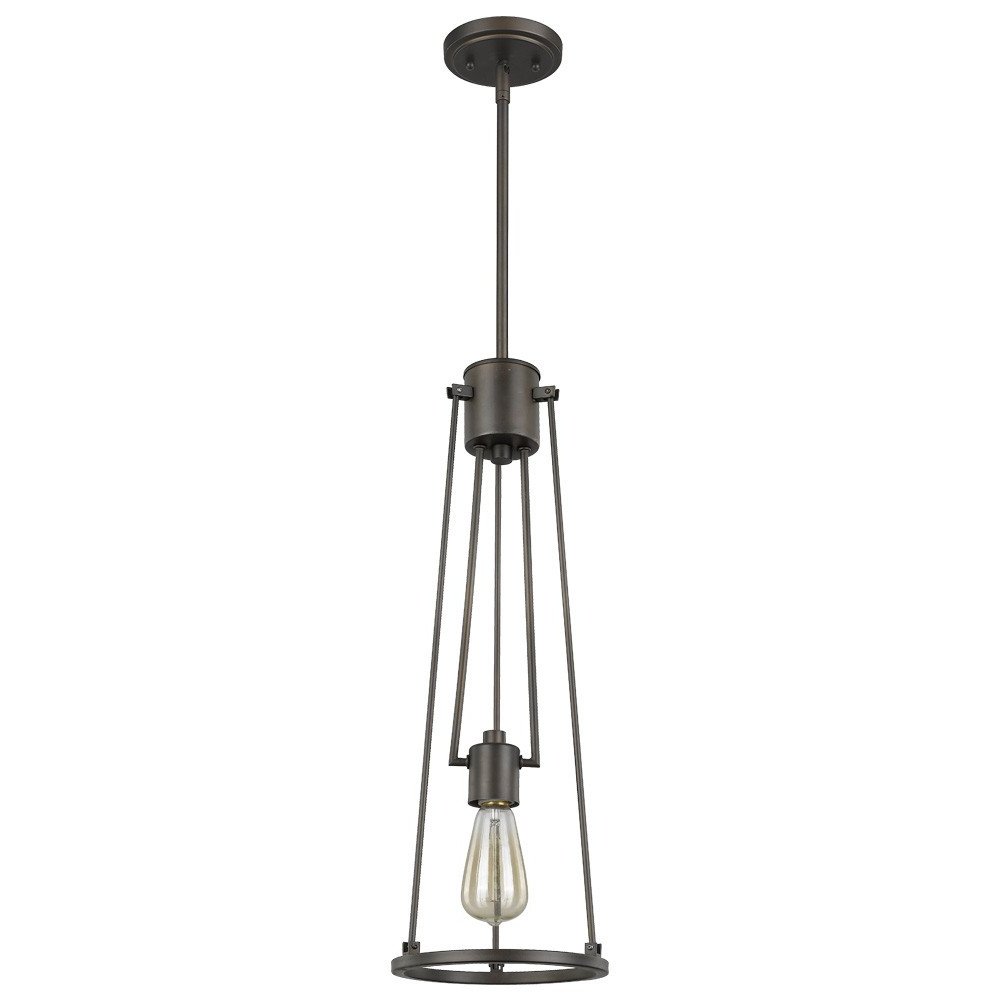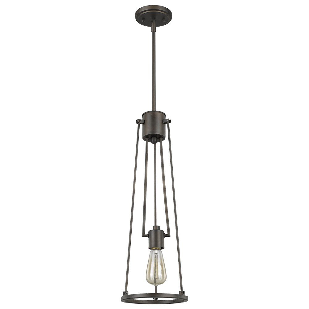Jade 1-Light Oil-Rubbed Bronze Pendant With Vertical Structural Frames